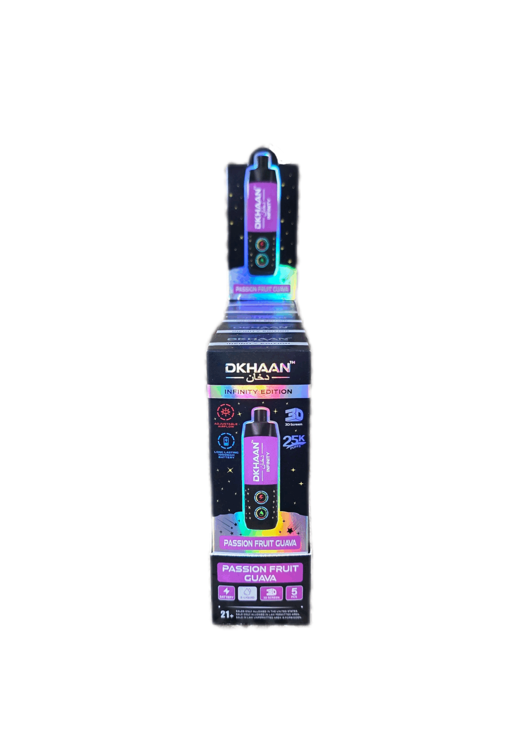 The Dkhaan brand is synonymous with elite performance. This brand of vape sports 25,000 puffs, a 1000mAh battery with type C display, and a 20mL capacity for its high intense flavored juice. The Dkhaan offers a unique approach to the vaping industry, and your customers will be lining up to give it a try.