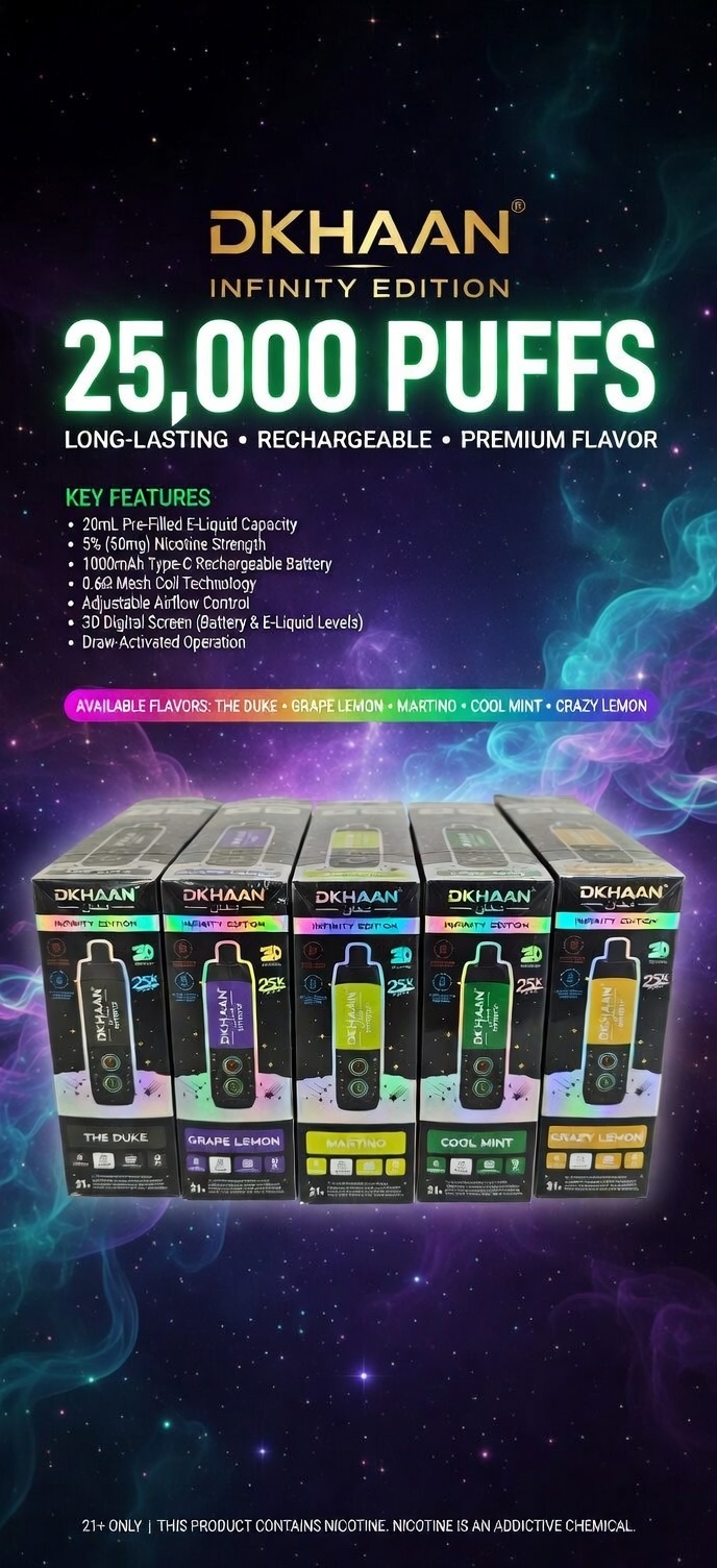 | Flavour | Bagdad Nights, Cool Mint, Crazy Lemon, Don Juan, Double Apple, Grape Lemon, Gum Mint, Habibilicious, Honeymelon, Martino, Passionfruit Guava, Peach Cola, The Duke |