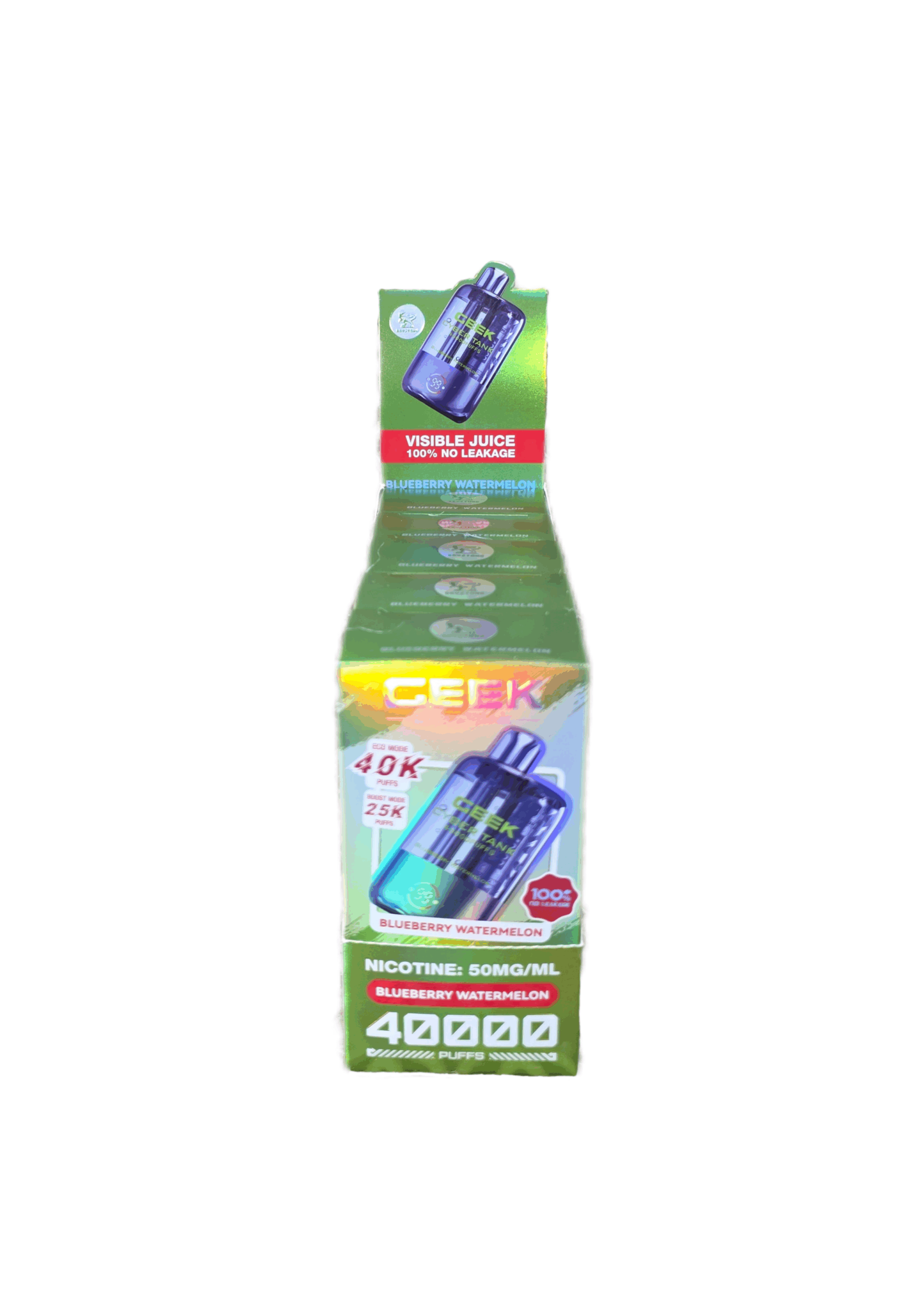 The Geek Cyber Tank is an up and coming vape brand, sporting 40,000 puffs, and a clear casing to visibly see juice levels. This new vape also has a “Beast Mode” that is a turbo function that if used consistently will bring the puff count to 25,000. The final unique feature of the Geek Cyber Tank is a whopping 1100mAh battery, not commonly seen on disposables of any variety.