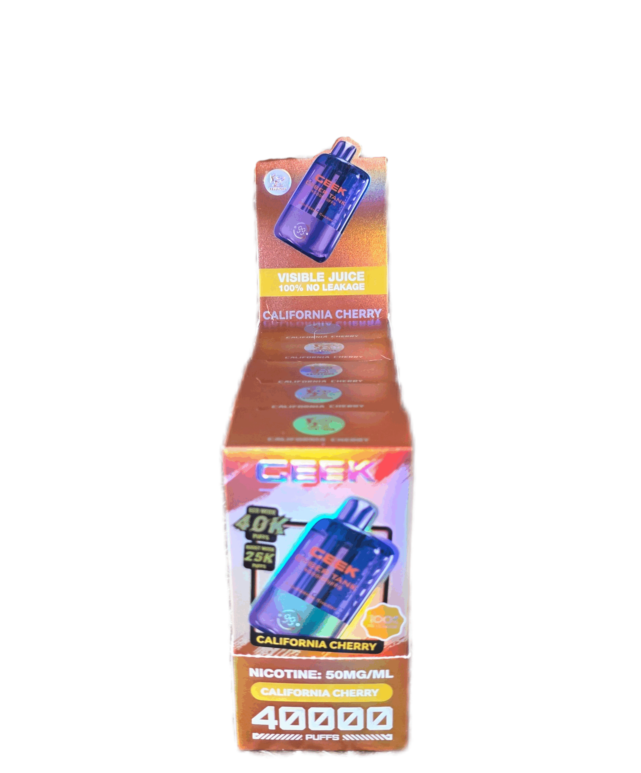 The Geek Cyber Tank is an up and coming vape brand, sporting 40,000 puffs, and a clear casing to visibly see juice levels. This new vape also has a “Beast Mode” that is a turbo function that if used consistently will bring the puff count to 25,000. The final unique feature of the Geek Cyber Tank is a whopping 1100mAh battery, not commonly seen on disposables of any variety.