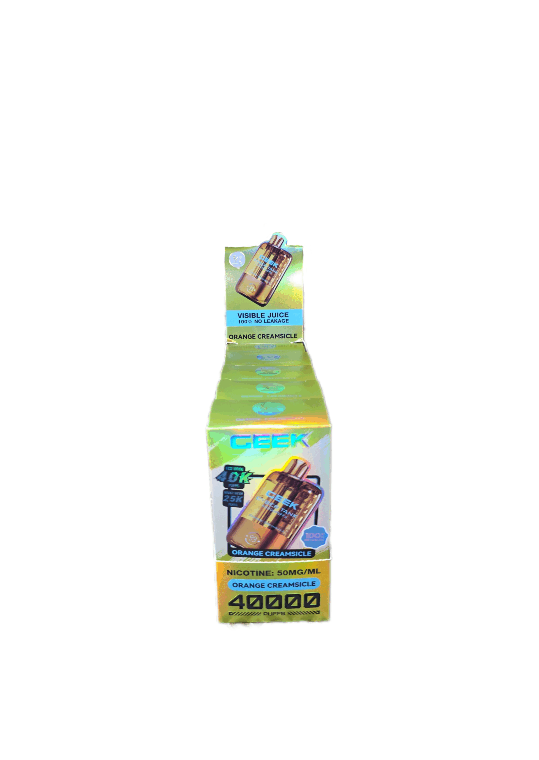 The Geek Cyber Tank is an up and coming vape brand, sporting 40,000 puffs, and a clear casing to visibly see juice levels. This new vape also has a “Beast Mode” that is a turbo function that if used consistently will bring the puff count to 25,000. The final unique feature of the Geek Cyber Tank is a whopping 1100mAh battery, not commonly seen on disposables of any variety.