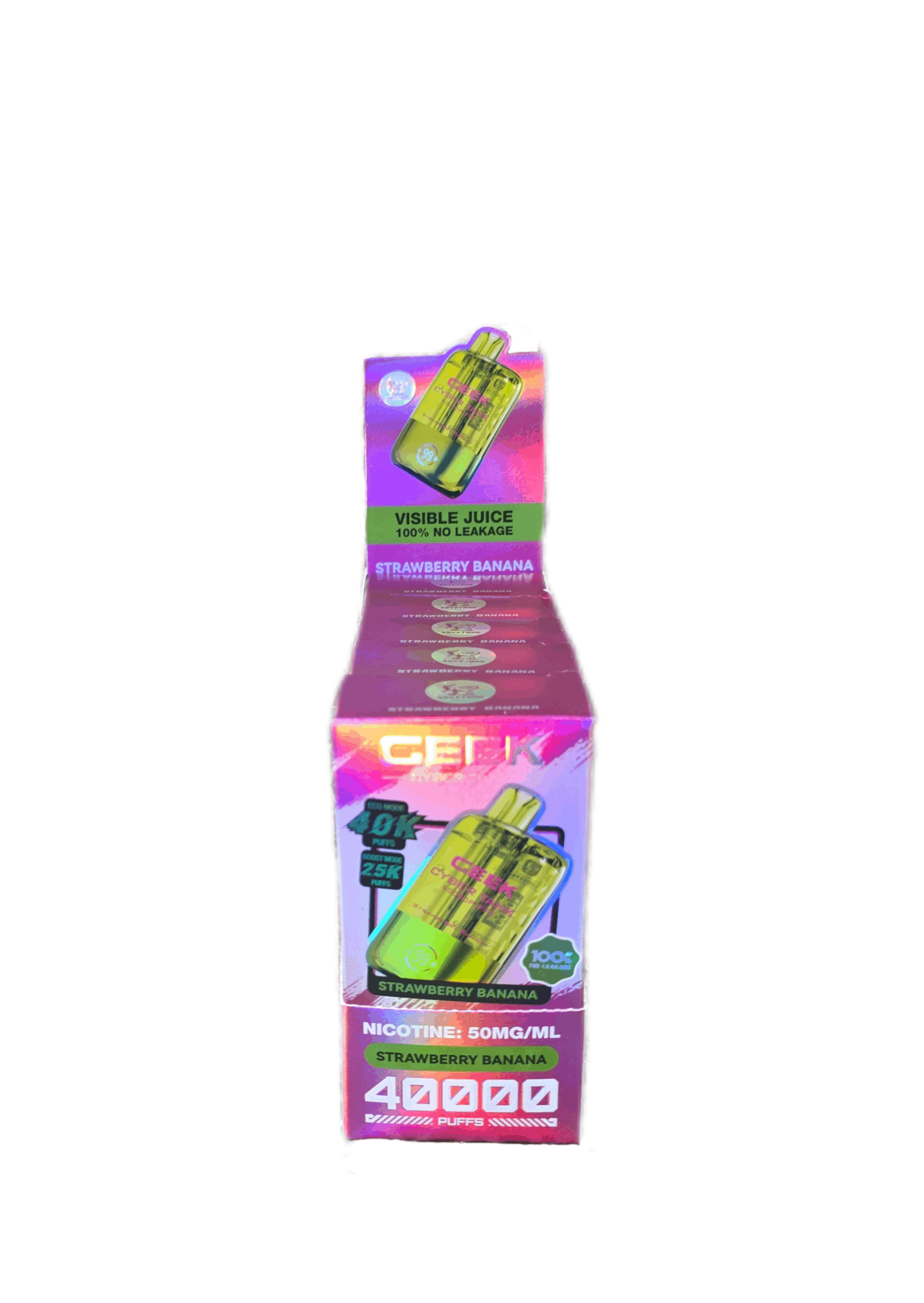 The Geek Cyber Tank is an up and coming vape brand, sporting 40,000 puffs, and a clear casing to visibly see juice levels. This new vape also has a “Beast Mode” that is a turbo function that if used consistently will bring the puff count to 25,000. The final unique feature of the Geek Cyber Tank is a whopping 1100mAh battery, not commonly seen on disposables of any variety.