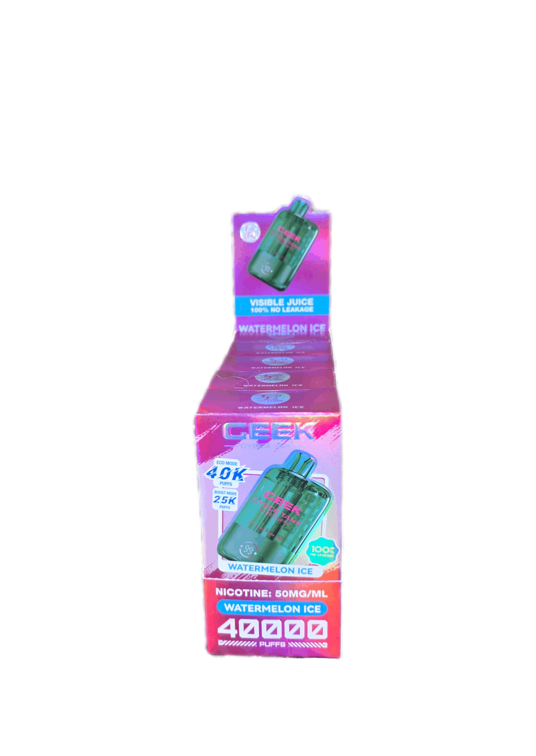 The Geek Cyber Tank is an up and coming vape brand, sporting 40,000 puffs, and a clear casing to visibly see juice levels. This new vape also has a “Beast Mode” that is a turbo function that if used consistently will bring the puff count to 25,000. The final unique feature of the Geek Cyber Tank is a whopping 1100mAh battery, not commonly seen on disposables of any variety.