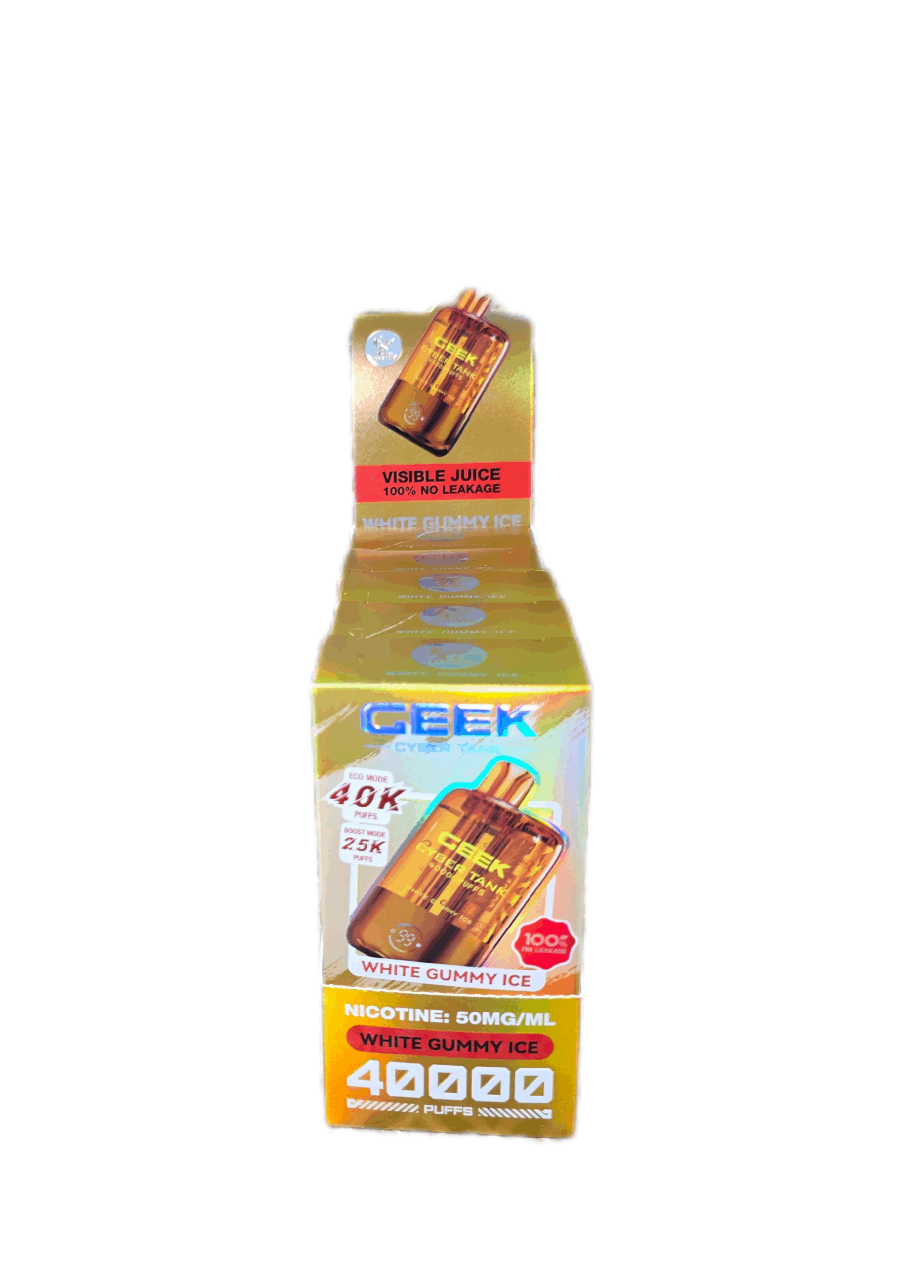 The Geek Cyber Tank is an up and coming vape brand, sporting 40,000 puffs, and a clear casing to visibly see juice levels. This new vape also has a “Beast Mode” that is a turbo function that if used consistently will bring the puff count to 25,000. The final unique feature of the Geek Cyber Tank is a whopping 1100mAh battery, not commonly seen on disposables of any variety.