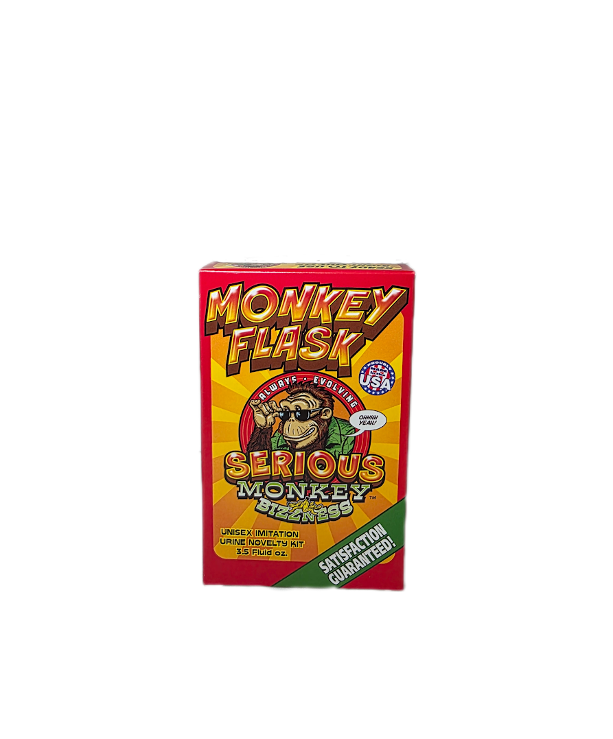 Monkey Flask and Monkey Wizz are names synonymous with the name of novelty urine. Each box has 3.5 oz of synthetic urine, easy to read temperature strip, and a heating pack that lasts up to 8 hours.