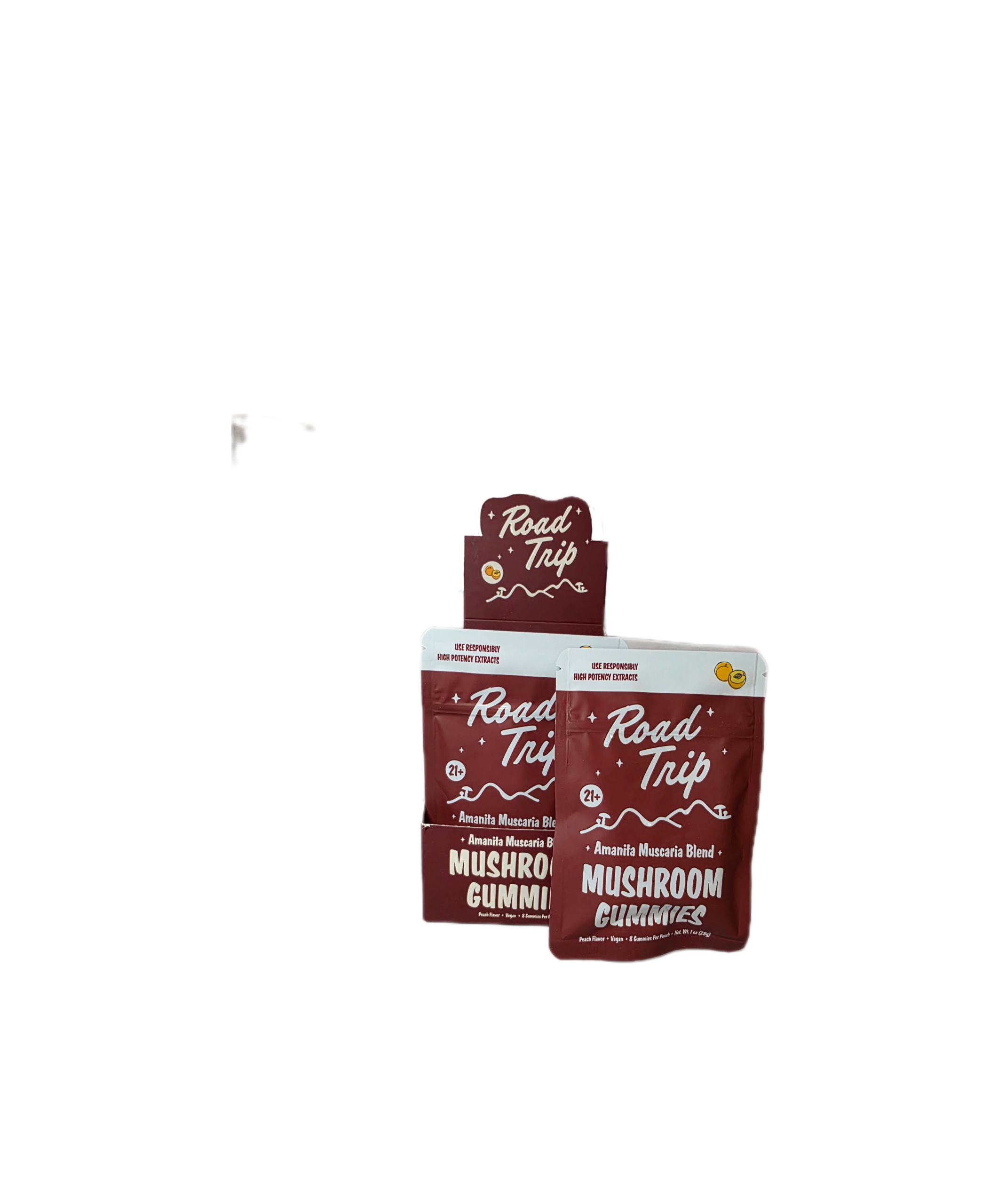 Road Trip is being acclaimed to be the top rated Legal Mushroom producer on the market. Road Trip Amanita Mascara blend is a legal blend of tryptamines that have been proven to elevate mood long term, increased introspection, enhanced creative energy, and an altered perspective. Every Bag contains 8 concentrated gummies.